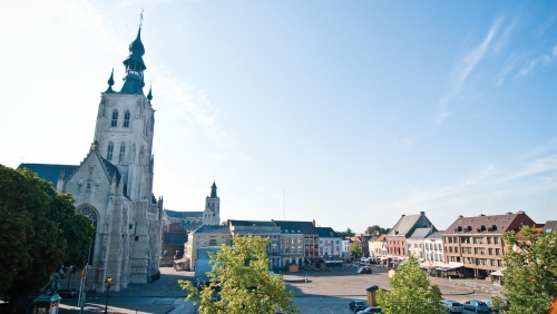 Terug naar Tienen – groene plekjes en verborgen parelsNa Hoegaarden fiets je via landelijke wegen terug richting Tienen. Onderweg passeer je historische hoeves en het rustige landschap rond de Grote Gete. In Goetsenhoven staat een opvallend oorlogsmonument op het dorpsplein. Terug in Tienen wacht nog een verrassend stille plek naast de drukke stad. Links van de Onze-Lieve-Vrouw-ten-Poelkerk ligt een kleine Lourdesgrot. Dit verborgen hoekje is een rustige afsluiter van de route.